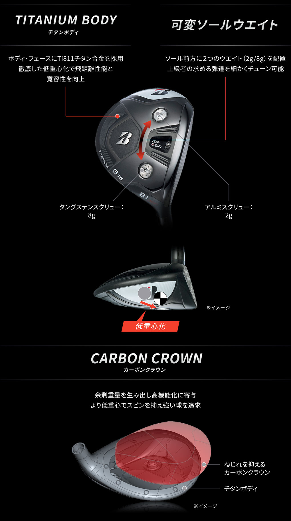 可変ソールウェイトにより弾道チューンも可能。