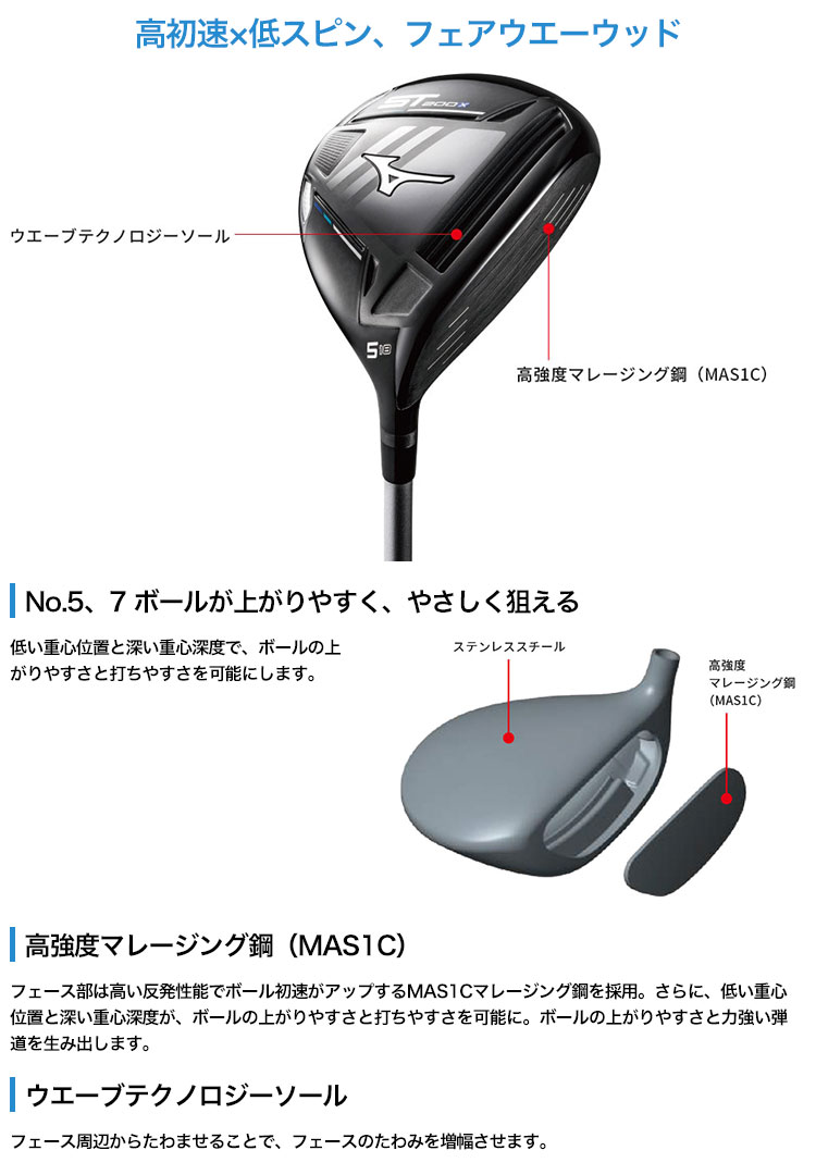 【毎日発送】【在庫限り】ミズノ ST200X フェアウエーウッド 5W 20 MFUSION F カーボンシャフト装着 日本正規品