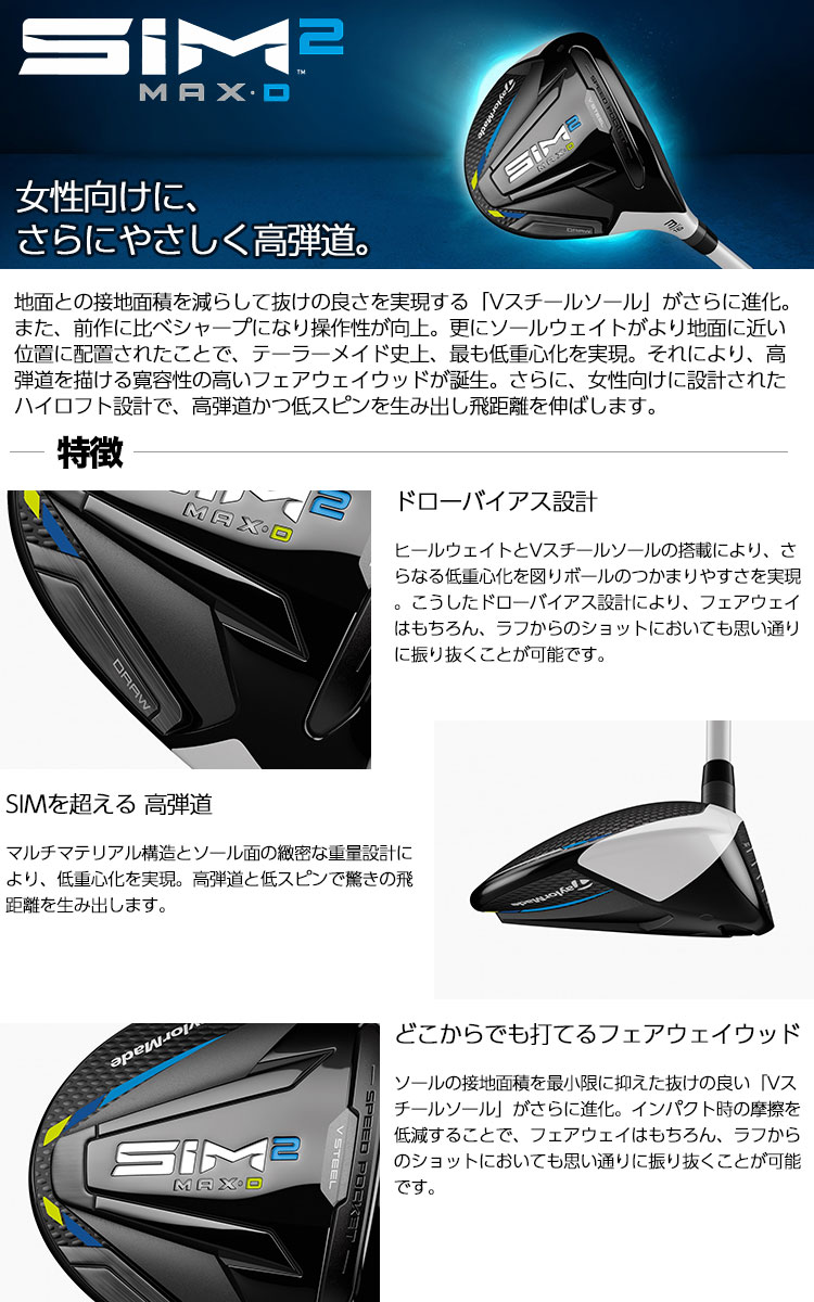 テーラーメイド SIM2 MAX-D ウィメンズ フェアウェイ TENSEI BLUE TM40 カーボンシャフト装着 日本正規品