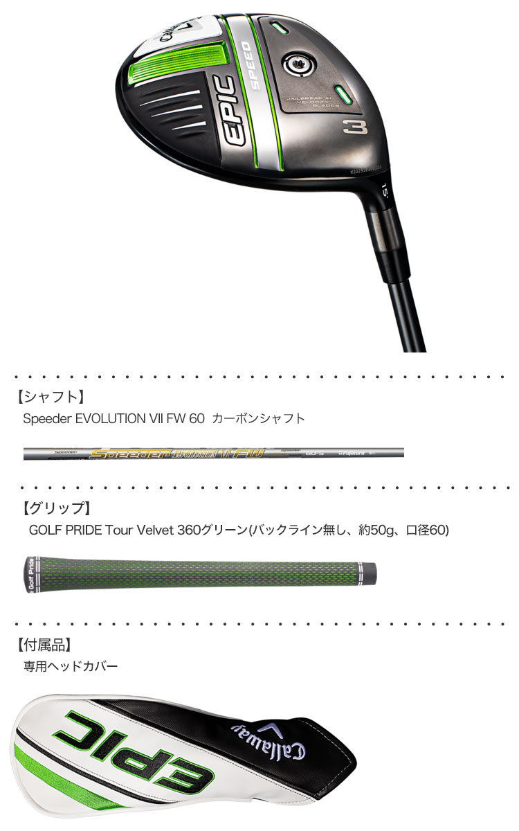 【毎日発送】キャロウェイ EPIC SPEED フェアウェイウッド Speeder EVOLUTION VII FW 60 カーボンシャフト装着 日本正規品 【エピックスピード】【21EPIC_JP】