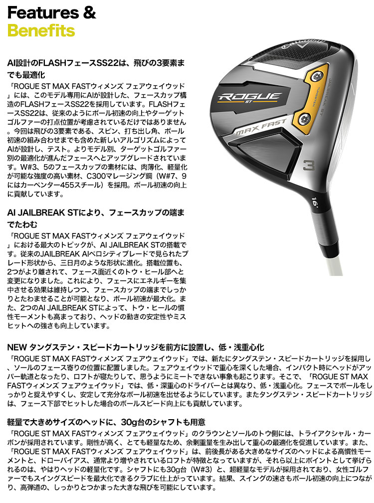 ドライバー同様に、「ROGUE ST MAX FASTウィメンズ フェアウェイウッド」においても、あらゆる部分でスピードの追求が図られています。