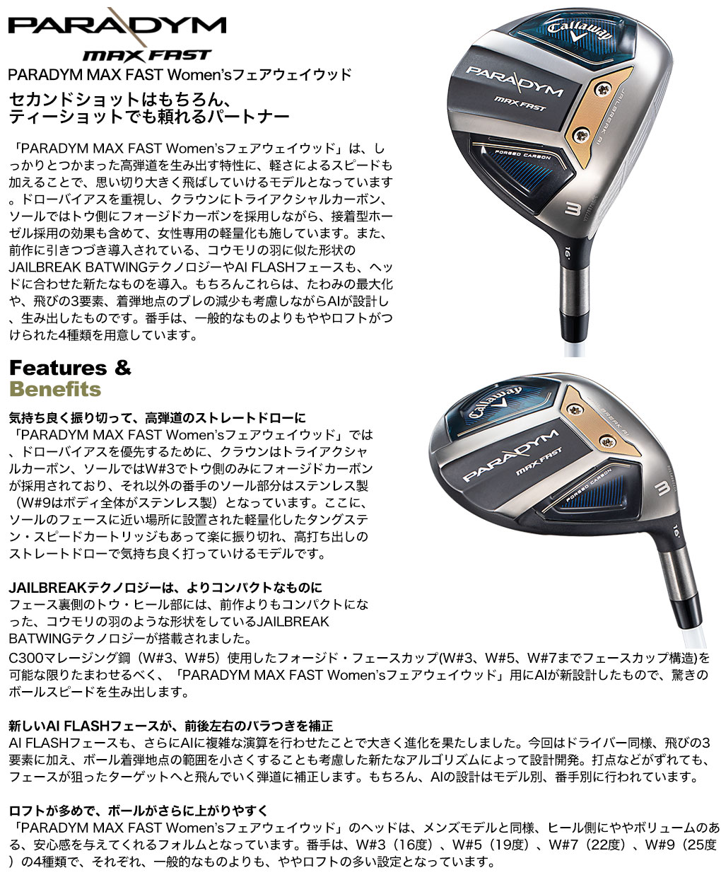 【レディース】キャロウェイ PARADYM MAX FAST Women’s パラダイム フェアウェイウッド レディース 右用 ELDIO 40 for Callaway カーボンシャフト 日本正規品 2023年モデル
