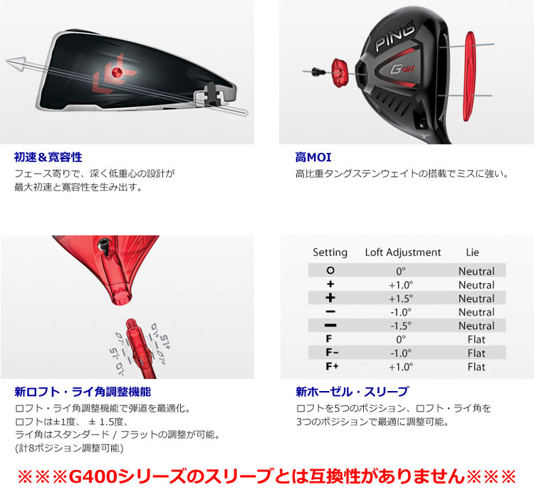 ・専用トルクレンチ…ロフト・ライ角調整機能で弾道を最適化。ロフトは±1度、 ± 1.5度、ライ角はスタンダード / フラットの調整が可能。