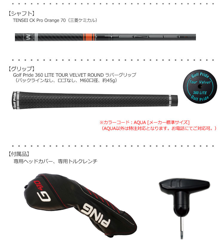 基本スペックからのカスタム(長さ・ライ角・グリップ変更など)を希望される場合は特注対応(WEB不可、お電話のみ)となり、別途納期を頂きます。予めご了承下さい。