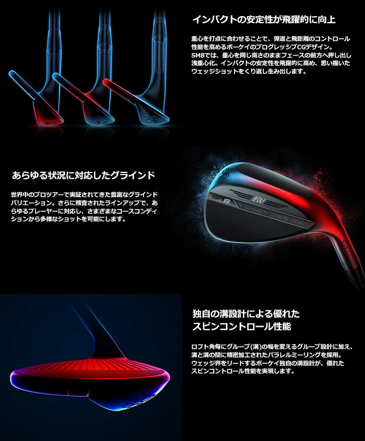 ウェッジ界をリードするボーケイ独自の溝設計で、優れたスピンコントロール性能を発揮。