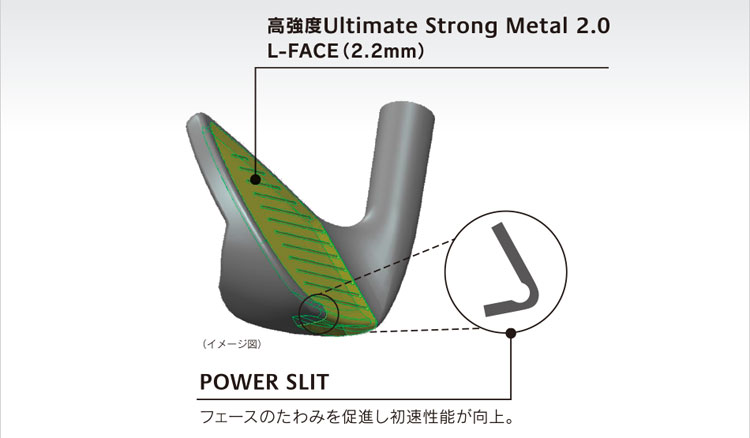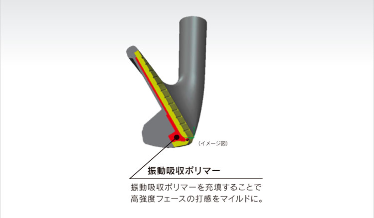 …「HF1」と同様の高強度「Ultimate Strong Metal2.0」を採用することで更なる飛距離性能を追求しつつも、振動吸収ポリマーを充填することによりマイルドな打感を追求。