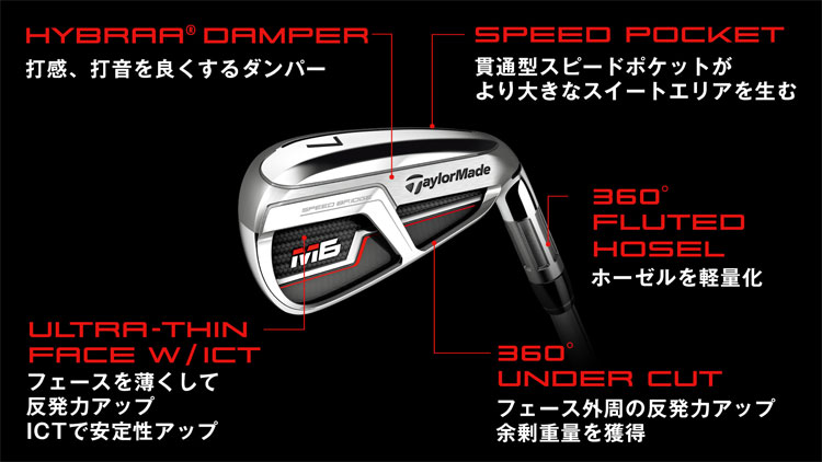 テーラーメイドの新テクノロジー「スピードブリッジ」を採用した高弾道・高初速・優れた打感・安心感のあるサイズを兼ね備えた女性向けM6アイアン。