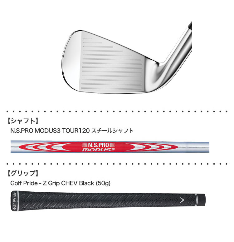 キャロウェイでは、軟鉄鍛造ボディ、マッスルバックのような形状とウェッジにも採用されているグルーブを持つフェース、そして2つのタングステンウェイトという4ピース構造の設計を採用。