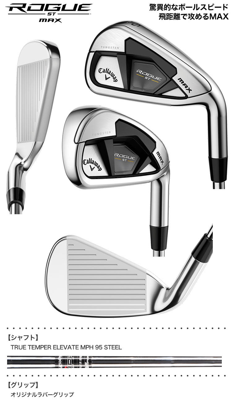 キャロウェイ ROGUE ST MAX アイアンセット 6本組(#5-P) メンズ 右用 TRUE TEMPER ELEVATE MPH 95 スチールシャフト装着 USA直輸入品 ジーパーズはUS直輸入品でも独自の2年保証