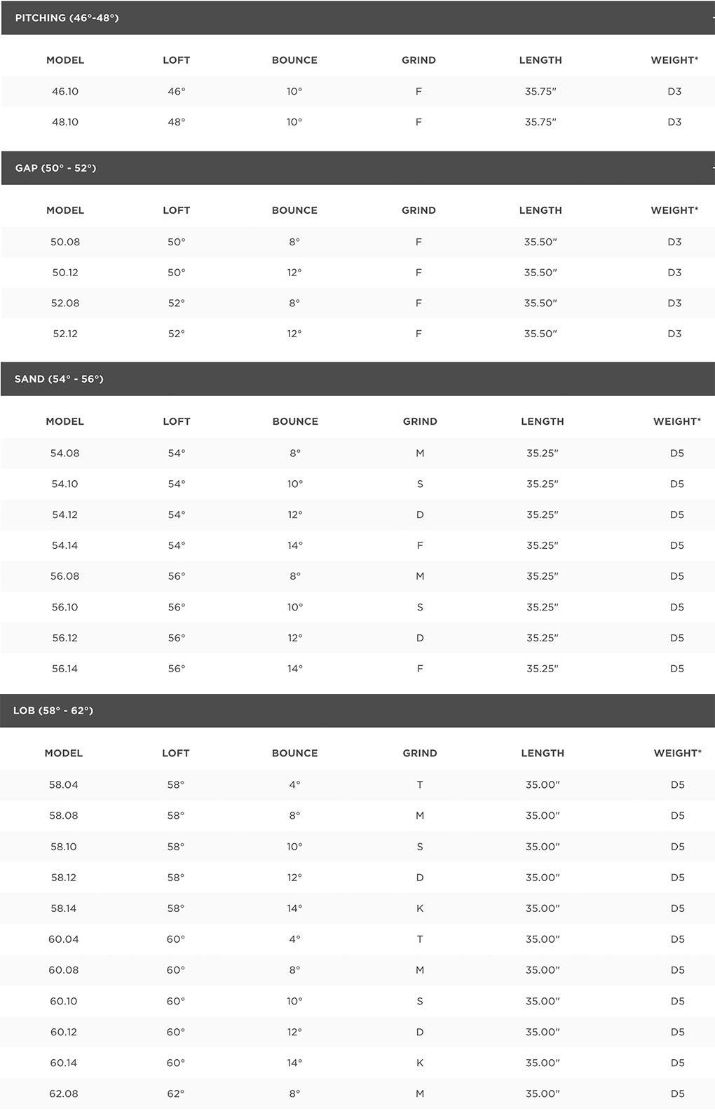 ゴルファーのスイングはそれぞれに異なるので、そのスイングに合ったスペックが必要です。あなたのプレースタイルに理想的なグラインドの組み合わせを見つけることで、理想的なコンタクトと最大限の許容性が得られ、コース上で要求されるあらゆる条件に備えることができるのです。SM10ウェッジは、ツアーで実績のある6種類のグラインドをもって、あなたのウェッジゲームの可能性を最大限に広げます。