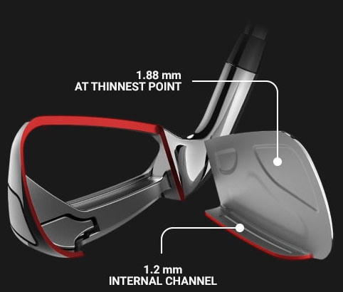 最も薄いポイントで1.8mmで、オフセンターヒットでの飛距離向上のため、スイートゾーンを拡大しています。