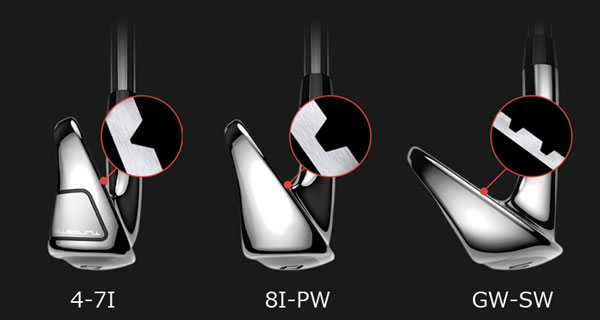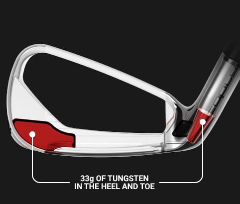 33gのタングステンウェイトが4~7番アイアンのヒールとトゥで組み合わされ高慣性モーメント化。