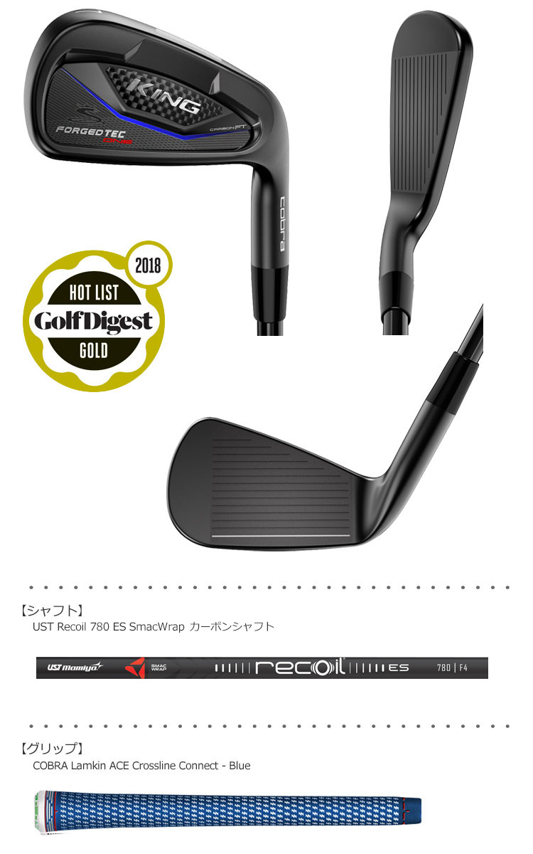 【毎日発送】【全番手同一レングス】コブラ COBRA 2018 KING FORGED TEC BLACK ONE LENGTH アイアン 6本組(5I-PW) [UST Recoil 780 ES SmacWrap カーボン装着] (USA直輸入品)【カーボンシャフト】