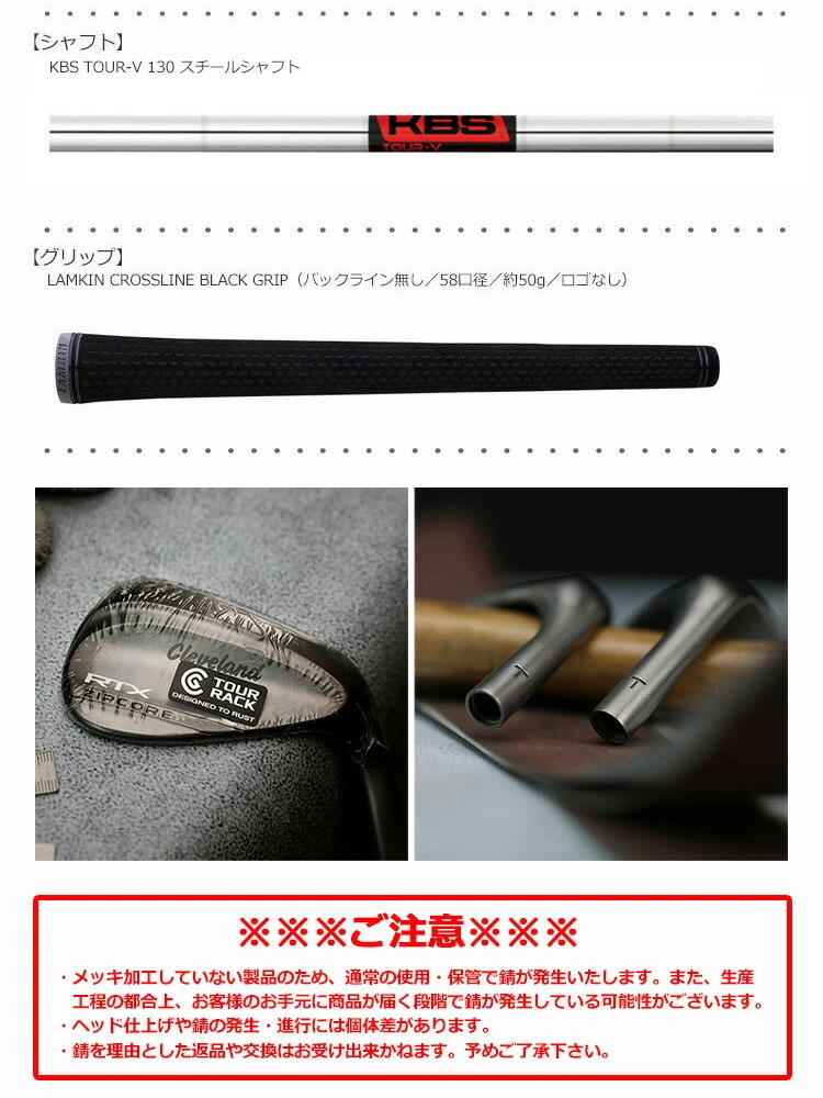 通常仕様でも時間経過によりヘッドに錆が発生しますが、これはノーメッキ仕上げの特徴であり製品の不具合や不良ではありません。また、錆の度合いはクラブの使用頻度や保管状況により異なります。