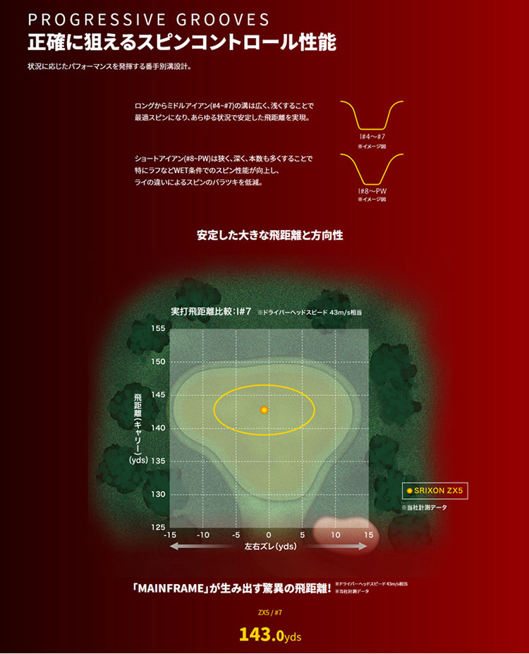 高初速による力強い大きな飛びと方向安定性を兼ね備えたZX5 アイアン