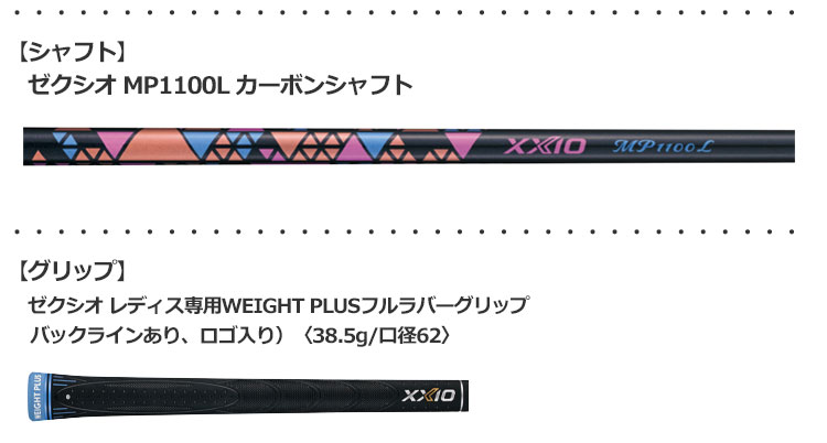 ■グリップ:ゼクシオ レディス専用WEIGHT PLUSフルラバーグリップ (バックラインあり、ロゴ入り)(38.5g/口径62)