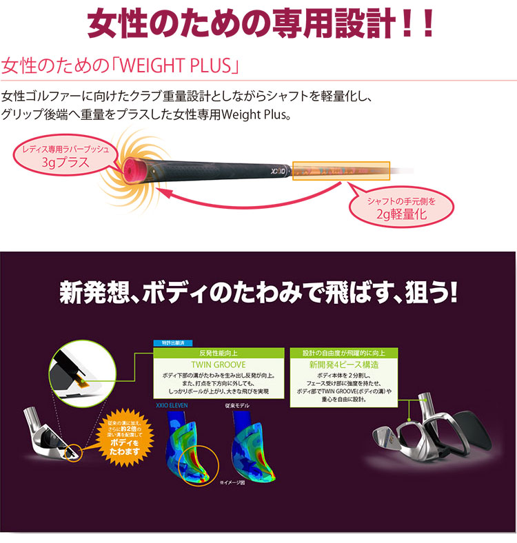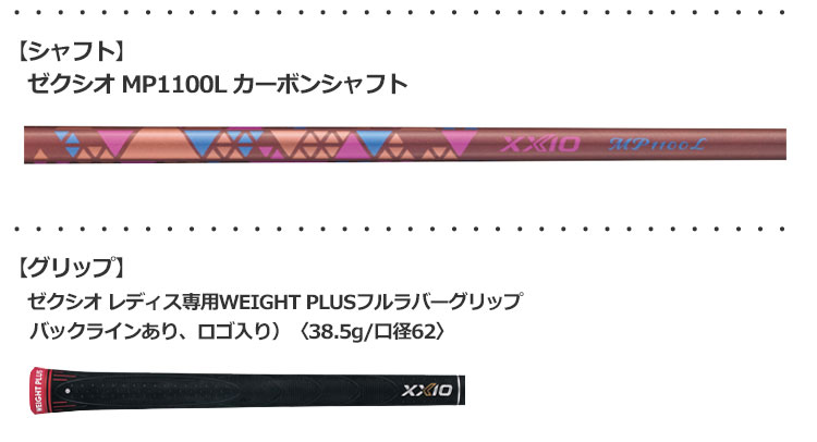 ■グリップ:ゼクシオ レディス専用WEIGHT PLUSフルラバーグリップ (バックラインあり、ロゴ入り)(38.5g/口径62)