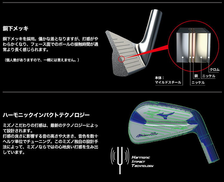 素材 (No.4~7):本体/クロムモリブデン鋼(SCM435)精密鍛造、バック部/ソフトステンレススチール(SUS431)精密鋳造、キャビティ部/タングステンウエイト