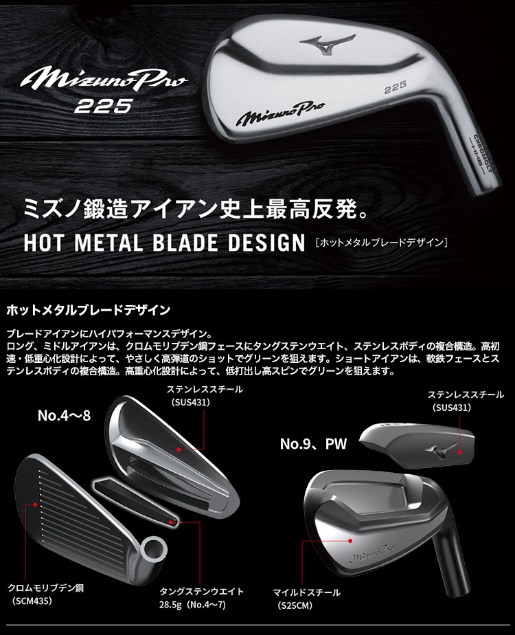 【毎日発送】ミズノ Mizuno Pro 225 アイアンセット 6本組(#5-P) Dynamic Gold 95 スチールシャフト装着 日本正規品