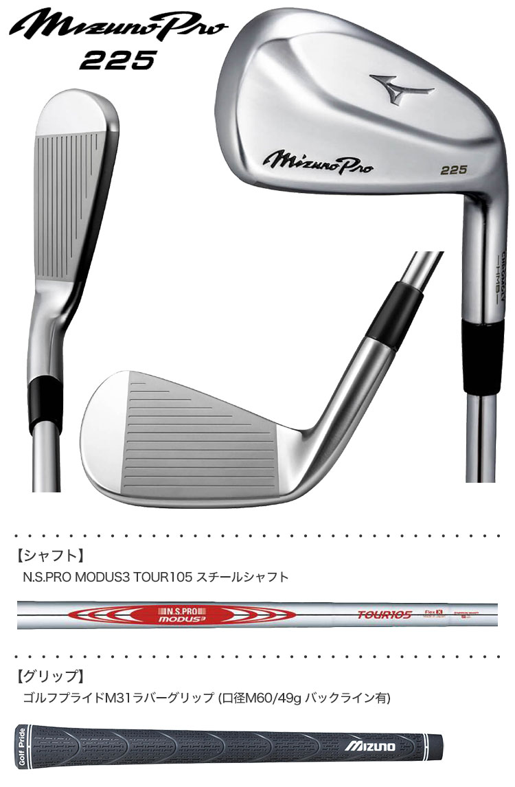 【毎日発送】ミズノ Mizuno Pro 225 アイアンセット 6本組(#5-P) N.S.PRO MODUS3 TOUR105 スチールシャフト装着 日本正規品