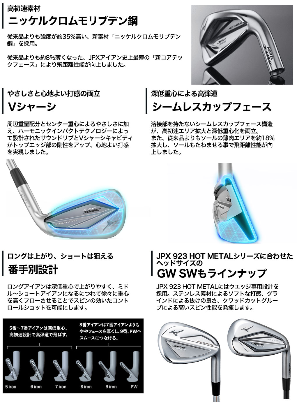 ミズノ JPX 923 HOT METAL アイアン 6本組(#5-9,PW) メンズ 右用 N.S.PRO 950GH neo スチールシャフト 2022年モデル 日本正規品