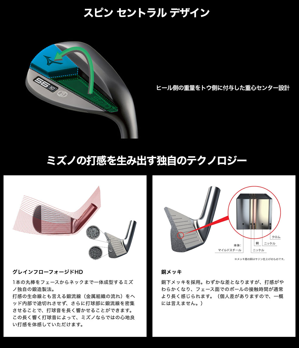 グレインフローフォージドHD製法の軟鉄ウエッジと重心センター設計が融合