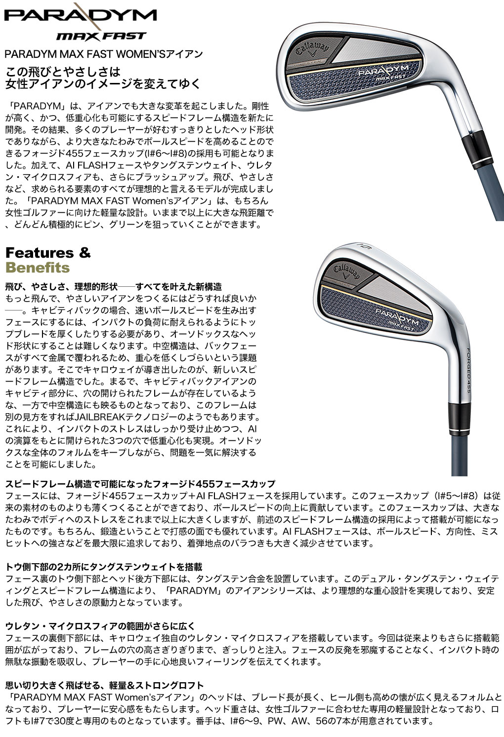 【レディース】キャロウェイ PARADYM MAX FAST Women’s パラダイム アイアン 5本セット(7I-PW,SW) レディース 右用 ELDIO 40 for Callaway カーボンシャフト 日本正規品 2023年モデル パラダイムMD
