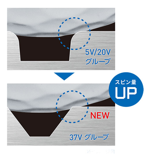 いちばんの進化のポイントは、新たな形状の溝、37Vグルーブ。