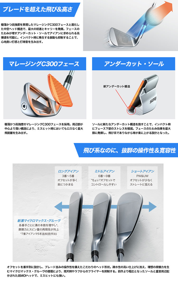 高弾道の飛びと寛容性を兼ね備え、確実にピンを狙える新飛び系アイアン。
