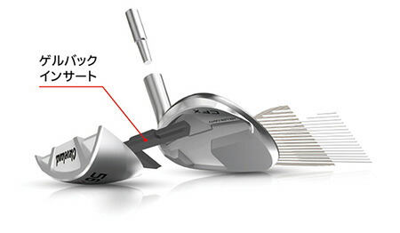バックフェース内部に「ゲルバックインサート」を装着することで、打球時に生じる余計な振動を抑制し打感を向上させています。