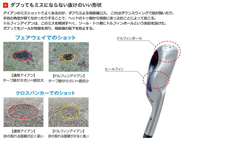 ドルフィンウェッジを受け継いだ、抜けの良いドルフィンアイアン