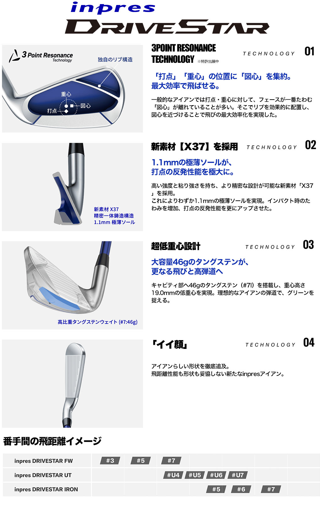 ヤマハ インプレス ドライブスター Inpres DRIVESTAR アイアン 4本セット (#7-PW) メンズ 右用 SPEEDER NX for Yamaha M423i 2022年モデル 日本正規品