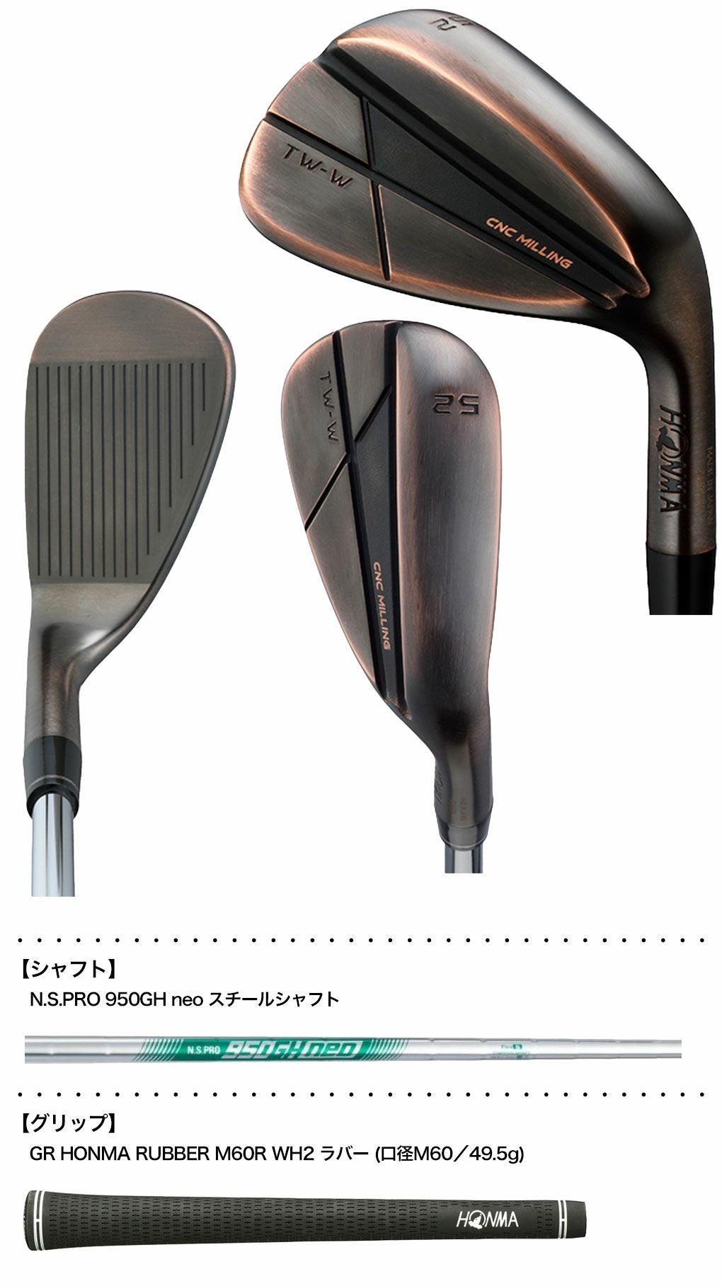 他の画像を見る ウェッジ ゴルフクラブ ツアーワールド HONMA 日本モデル 本間ゴルフ T//WORLD TW-W 2024 Copper ウェッジ カッパー仕上げ メンズ 右用 N.S.PRO 950GH neo 2024年モデル 日本正規品 ウェッジ ゴルフクラブ ツアーワールド HONMA 日本モデル 当店価格 ¥ 19,250 税込 カートに入れる お気に入りに登録する