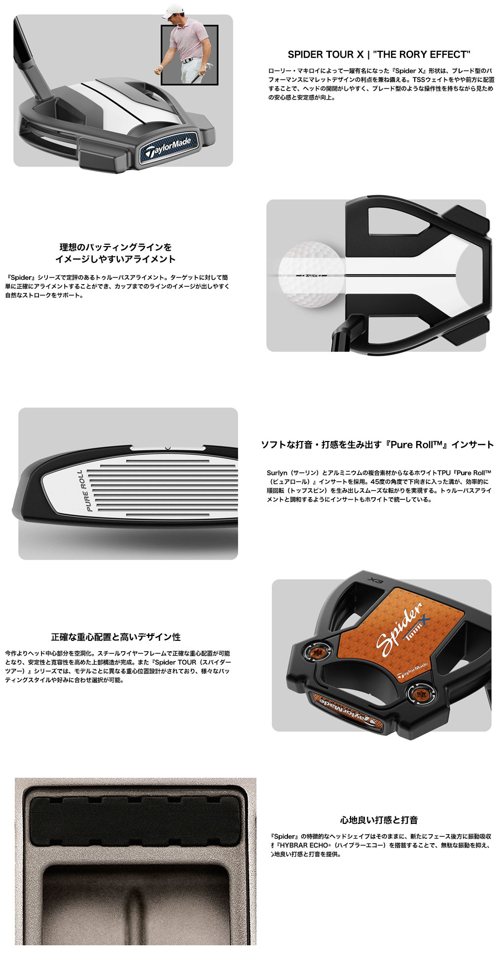 2008年の誕生以来、世界中のツアープレーヤーに支持されメジャー大会での数々の勝利に貢献してきた『Spider』パター。原点とも言える高慣性モーメントで高い安定性と寛容性を実現したフラッグシップモデル『Spider』が、最新テクノロジーによってパフォーマンスがさらに向上し、新しい『Spider TOUR(スパイダー ツアー) 』シリーズとして蘇る。