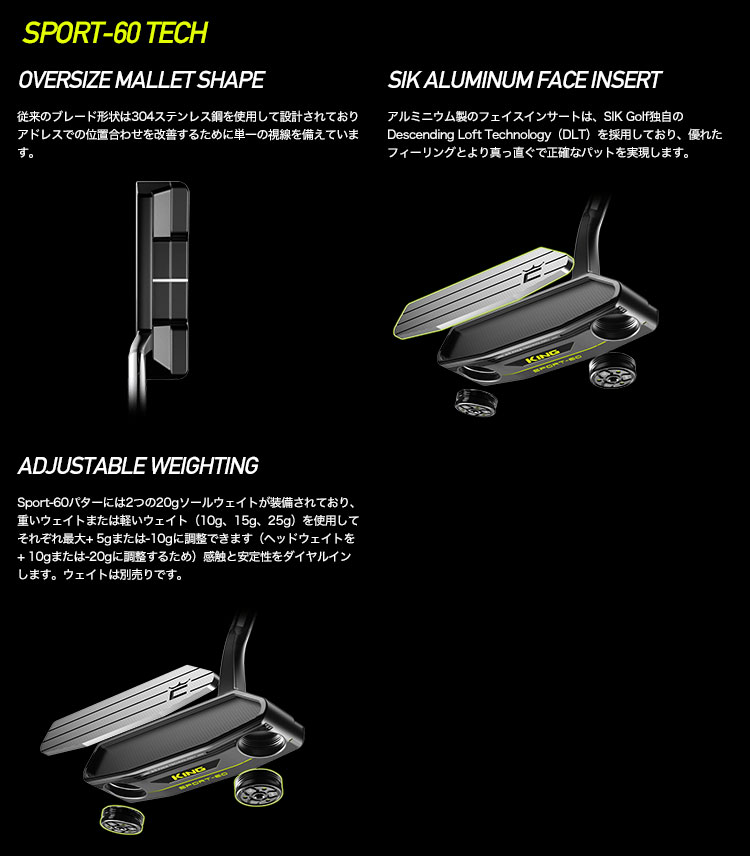クラシック形状。調整された安定性と感触を提供するSIKフェイステクノロジー