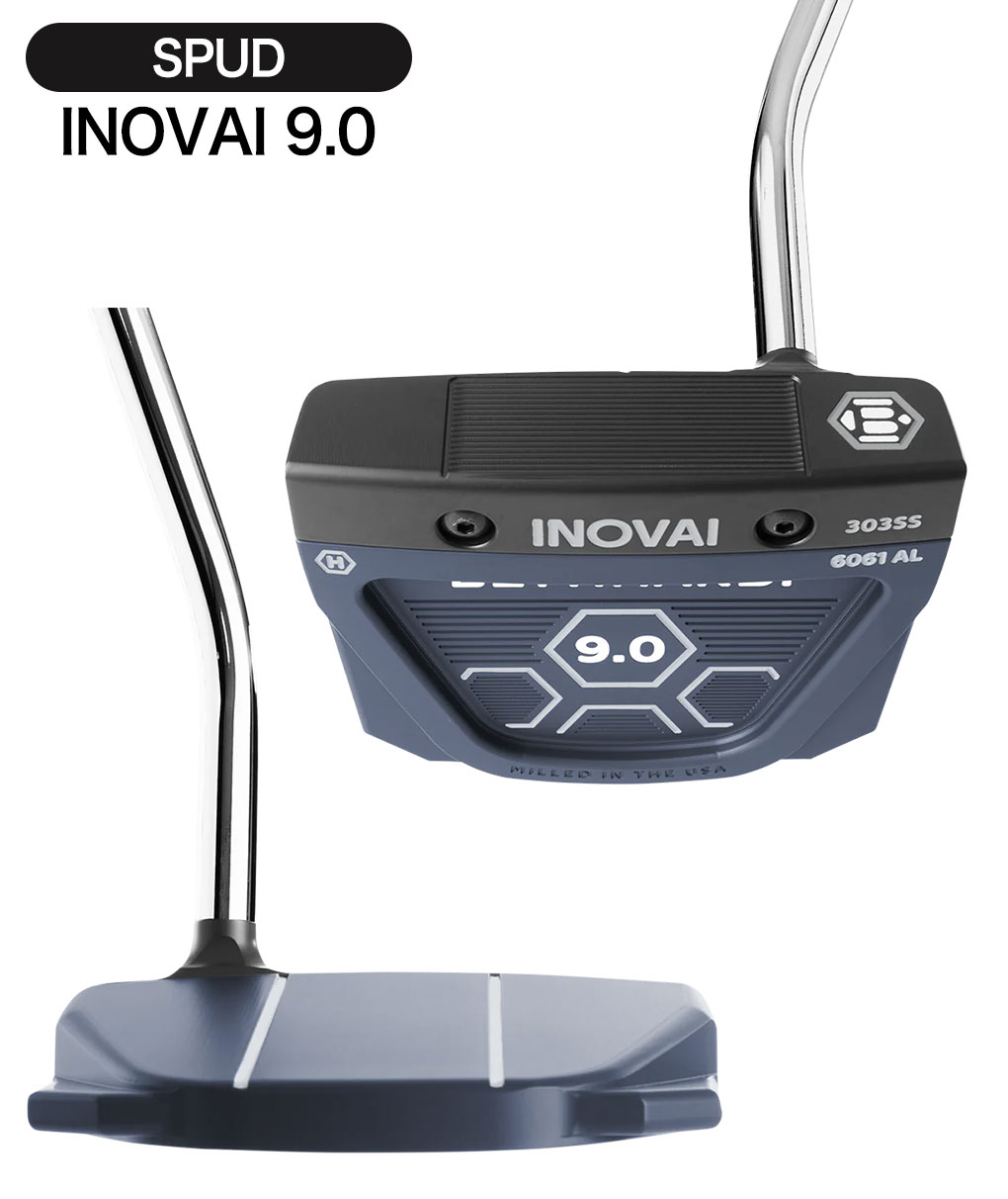 INOVAI9.0はロバート・ベティナルディが今回新たに図面を描き起こしたパターです。幅広のボディは長いサイトライン、テーパー状のフランジとコントロール性を高めるための安定性を生み出すウィングなどが理想的なエイミング効果を引き出します。精度の高い機械加工技術により、ボディとフェースはシームレスに接続し、アライメントを容易にする広いトップラインが特徴です。ソールを均一の深さに削り取ることで生まれた余剰重量を周辺に配分し、M.O.I.(慣性モーメント)を最大化しながら、重心位置にも綿密な検討を加え、安定性とコントロール性を両立させたマレットが誕生しました。Roll ControlTMをフェースにミーリング加工した303SS製フロントピースはインパクト時にボールに前方へのロールを促進し、スキッドとサイドスピンを軽減させるとともに、ツアープレーヤーが好むソフトな打感と打音のフィードバックを実現します。