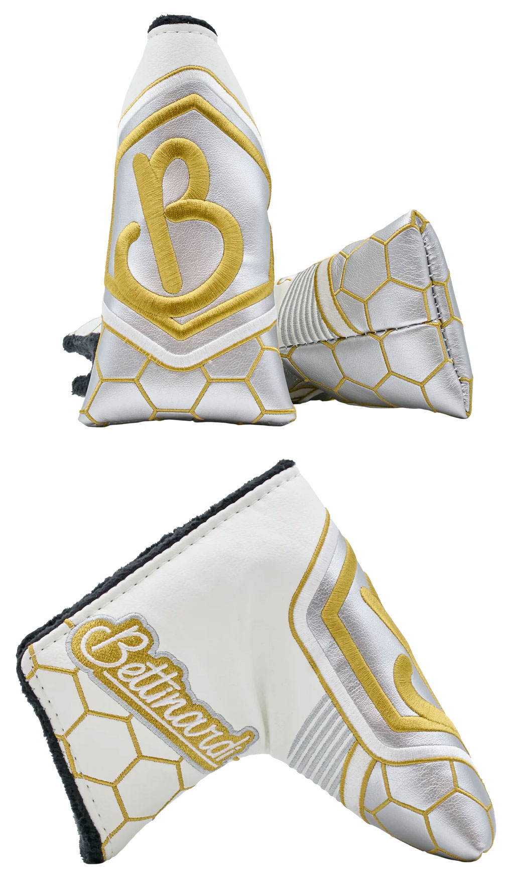 1950年代をテーマにしたQueen Bプロトタイプブレードは、美しいゴールドフレーム仕上げと、ポケットとネックに手作業で配置されたシルバーアルマイト加工のハニカムミルド6061アルミニウムインサートが特徴です。303ステンレススチールから削り出された新設計のヘッドシェイプは、ストロークごとに安心感を与えるワイドフランジデザインを採用。バンパーはよりスイープ感と柔らかさを演出するよう改良されています。ポリッシュ仕上げのソールは、1950年代のクラシックなダイナーを彷彿とさせる印象的なデザインです。このQueen Bプロトタイプには、マグネット式ヘッドカバーと、ゴールドステッチバックが施されたブラックのGripmasterパンチングレザーグリップが付属します。世界限定300本!幸運を祈ります!