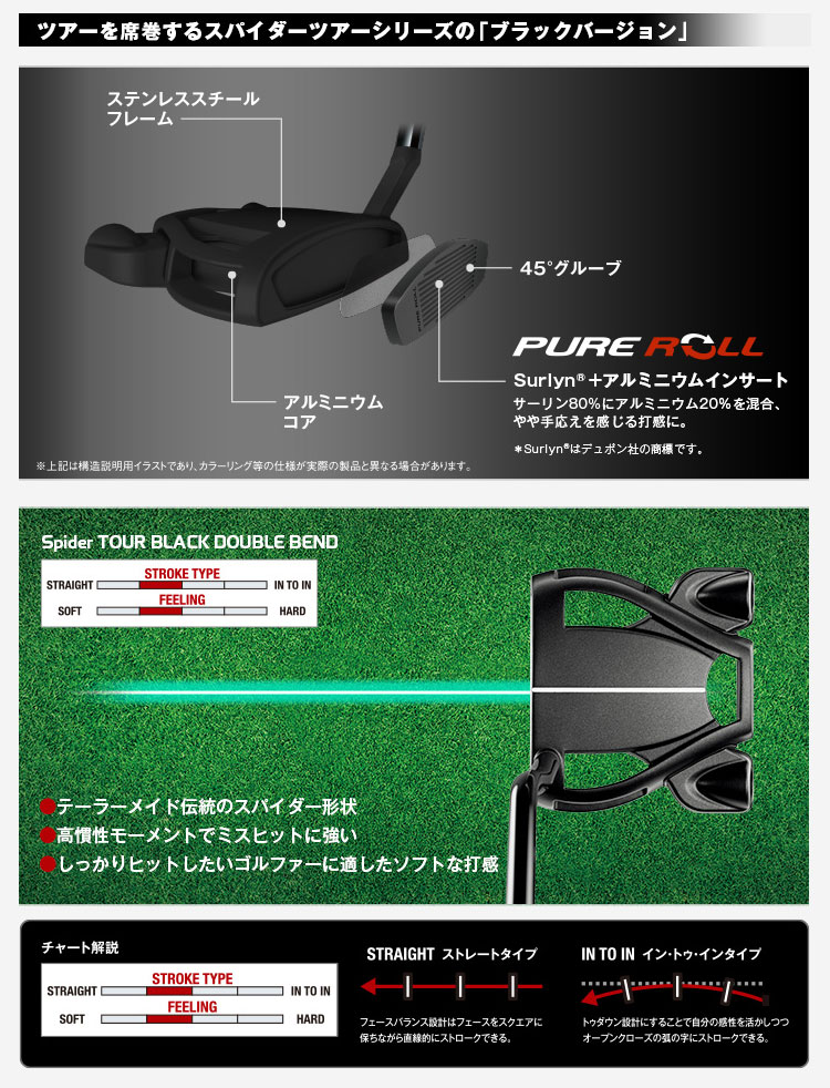 テーラーメイド TaylorMade Spider TOUR BLACK (スパイダーツアー ブラック) パター [ダブルベンド] 日本正規品