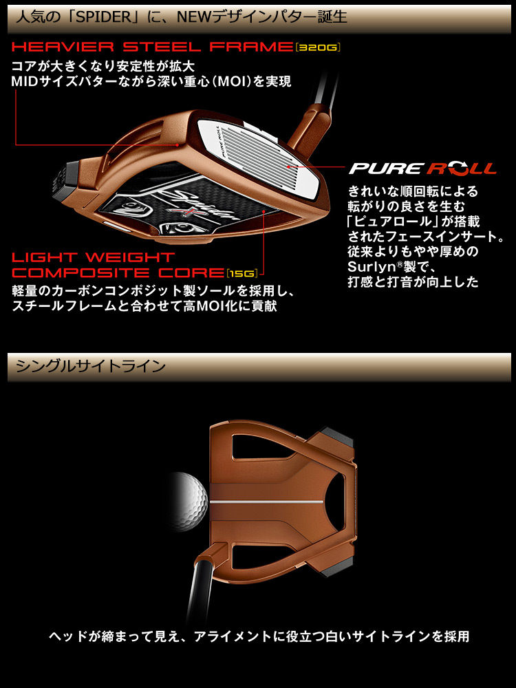 10年間トッププロとともに世界中のツアーで活躍してきた人気の「Spider」に、より高い安定性とより構えやすいアライメントの限界を追求したニューデザインパター誕生。