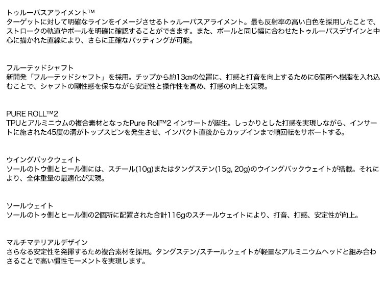 ツノ型ハイパフォーマンスパター登場。新開発「フルーテッドシャフト」が打感を向上する。