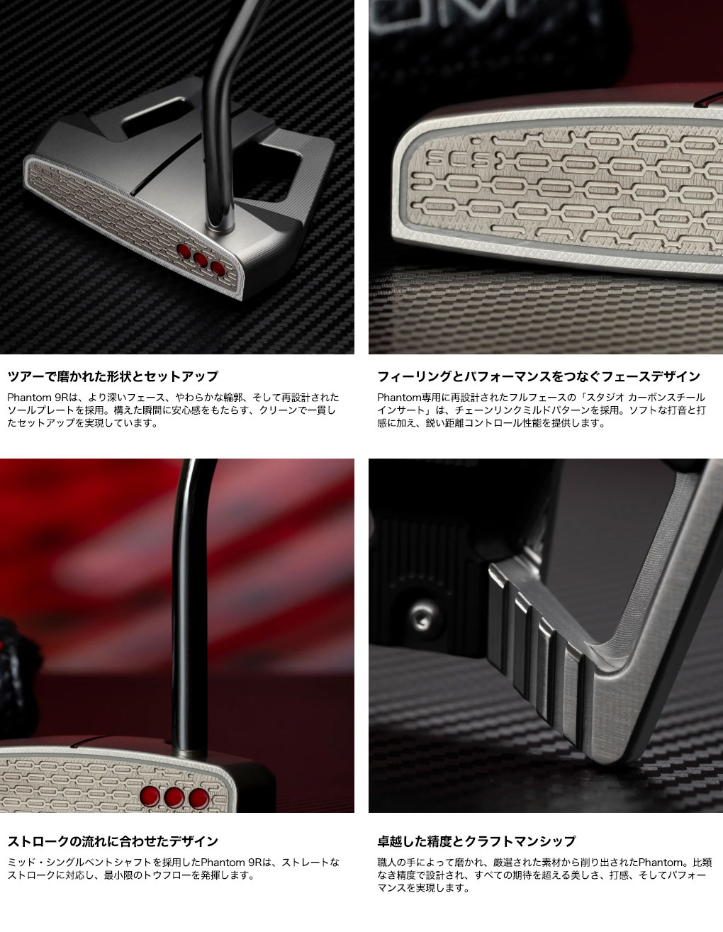 PHANTOMは、モダンマレットの性能と打感を新たな次元へと進化させたモデルです。新開発のフルフェース「スタジオ カーボンスチール インサート」が、よりソフトな打音と精密な距離コントロールを実現。さらに新しいヘッド形状とネックオプションにより、あらゆるストロークスタイルにマッチする理想のセッティングを提供します。
