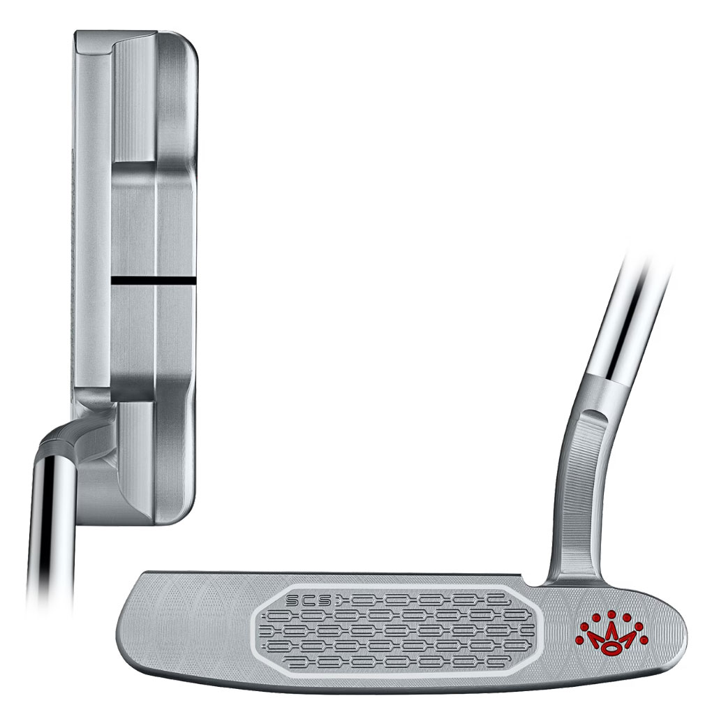 新採用の「スタジオ カーボンスチール(SCS)フェースインサート」は、チェーンリンク フェースミーリング テクノロジーにより、安定したロール特性、ソフトな打音、そして極上のフィーリングを実現。さらに仕上げには、スコッティ・キャメロンの象徴である透き通るレッドのチェリードットと、刻印された7ポイントクラウンを施し、職人の息づかいを感じさせるタイムレスなデザインに仕上げています。ネックはフローネックを採用しています。