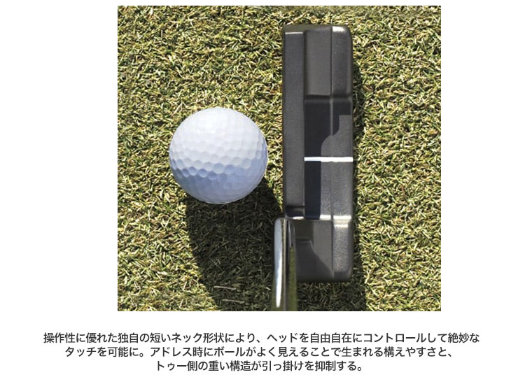 短いネックが操作性を高め、絶妙なタッチを可能に。重心がトゥ側にあることで引っ掛けを抑制し、アークタイプのストロークをする方へオススメ。