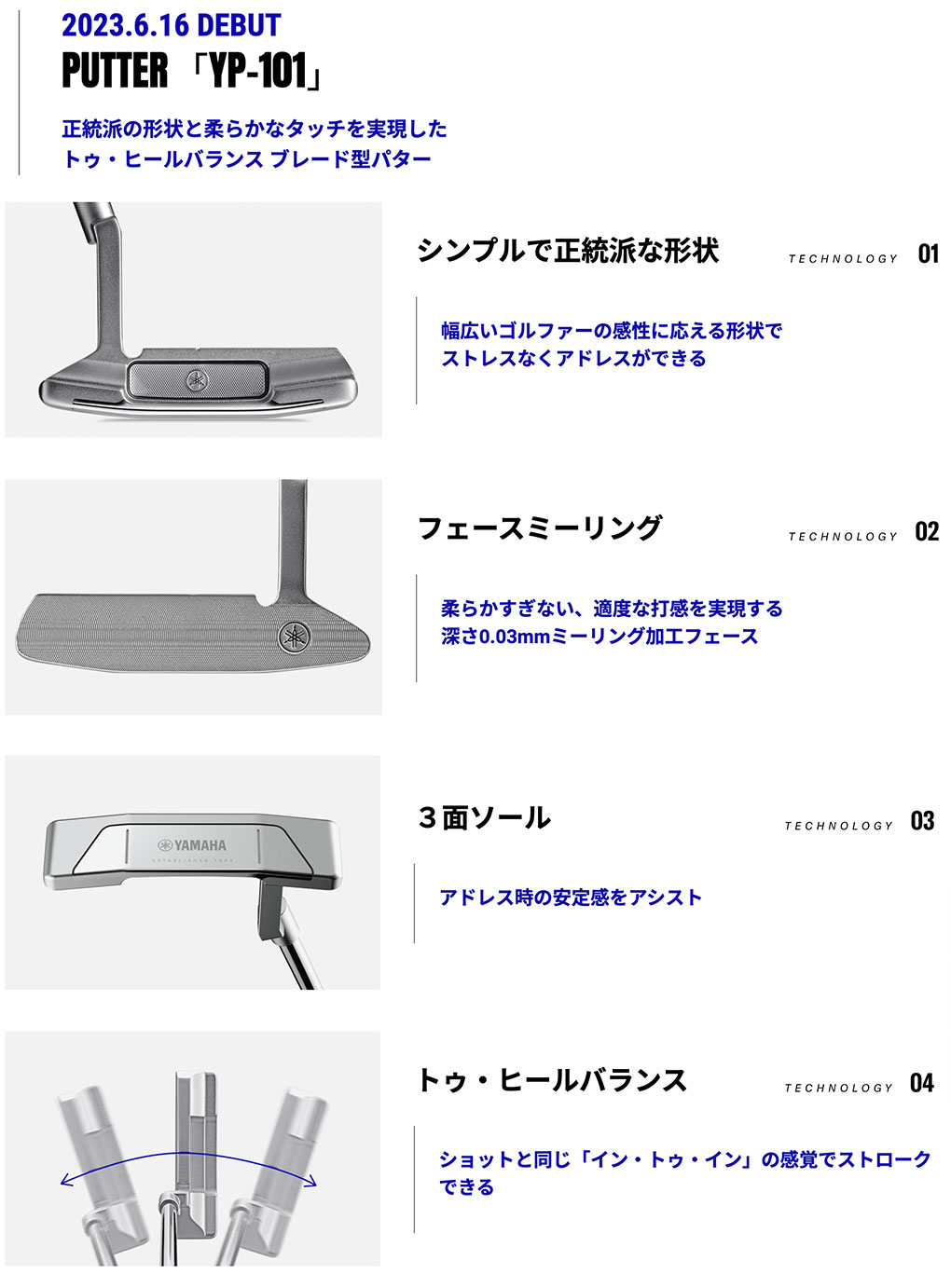ヤマハ YAMAHA YP-101 パター メンズ 33インチ 34インチ GOLF 2023年モデル 日本正規品 日本モデル ゴルフ ゴルフクラブ 右用 右打ち 右利き ワイピー101