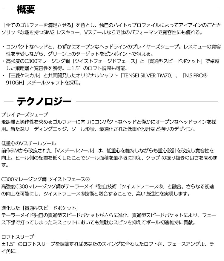 SIM2 ユーティリティ シム2 TaylorMade USモデル レフティー 【毎日発送】【レフティ】テーラーメイド SIM2 レスキュー メンズ 左用 Diamana Limited HY75 カーボンシャフト装着 USA直輸入品【ユーティリティ】