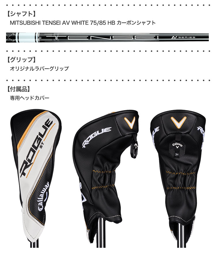 キャロウェイ ROGUE ST Pro ハイブリッド メンズ 左用 TENSEI AV WHITE 75/85 カーボンシャフト装着 USA直輸入品 ジーパーズはUS直輸入品でも独自の2年保証