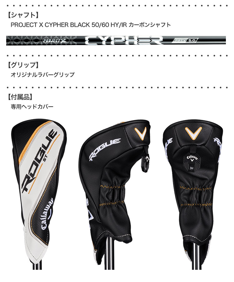 キャロウェイ ROGUE MAX OS Lite ハイブリッド メンズ 右用 CYPHER BLACK 50/60 カーボンシャフト装着 USA直輸入品 ジーパーズはUS直輸入品でも独自の2年保証