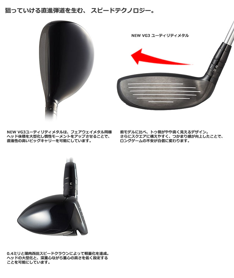 NEW VG3ユーティリティメタルは、フェアウェイメタル同様ヘッド体積を大型化し慣性モーメントを