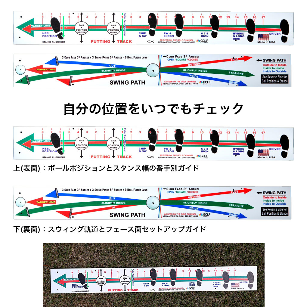 下(裏面):スウィング軌道とフェース面セットアップガイド