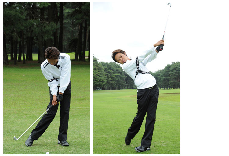 トップスイングでの右ひじの開きが顕著な方は、ベルトの締め付け具合をややきつめに調整し、使用してください。